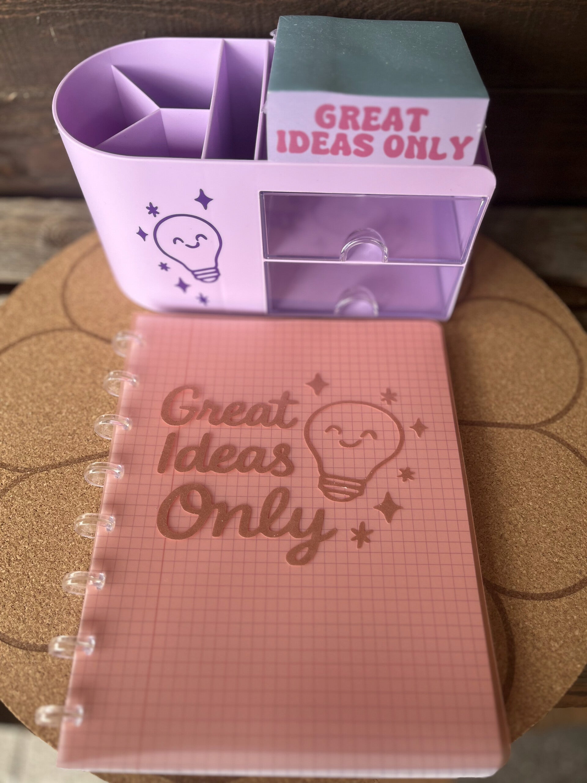 Met dit vrolijke setje heb je alles bij de hand om je beste ideeën vast te leggen.