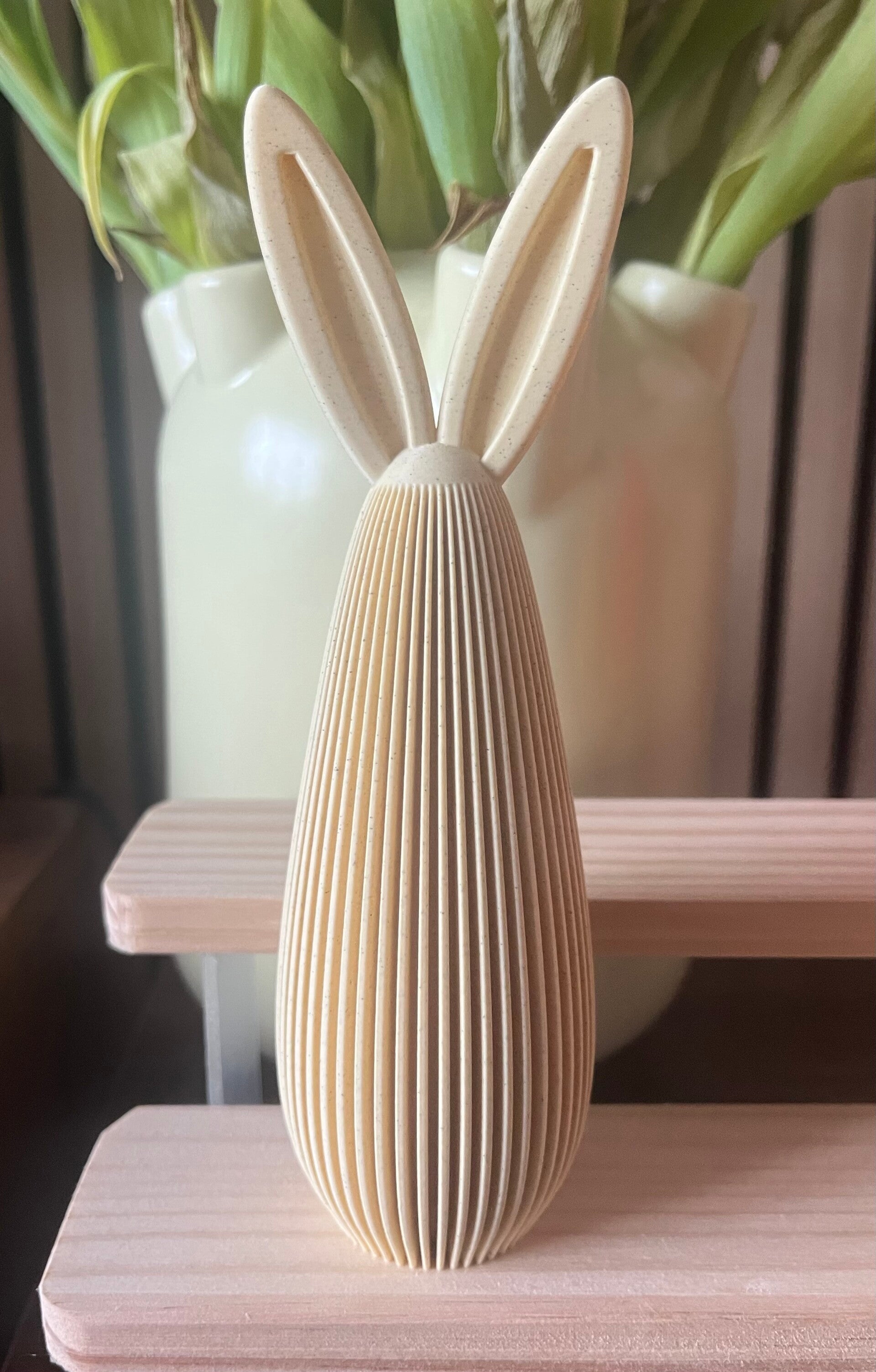 Breng instant lente in huis met deze 3D-geprinte decoratieve konijntjes. De fijne ribbelstructuur en zachte pastelkleuren geven elk konijntje een moderne, speelse uitstraling. Ze zijn licht van gewicht en perfect als eyecatcher op tafel, in een open kast of op de vensterbank. Mooi om te combineren in verschillende kleuren, en ideaal als lief cadeautje!