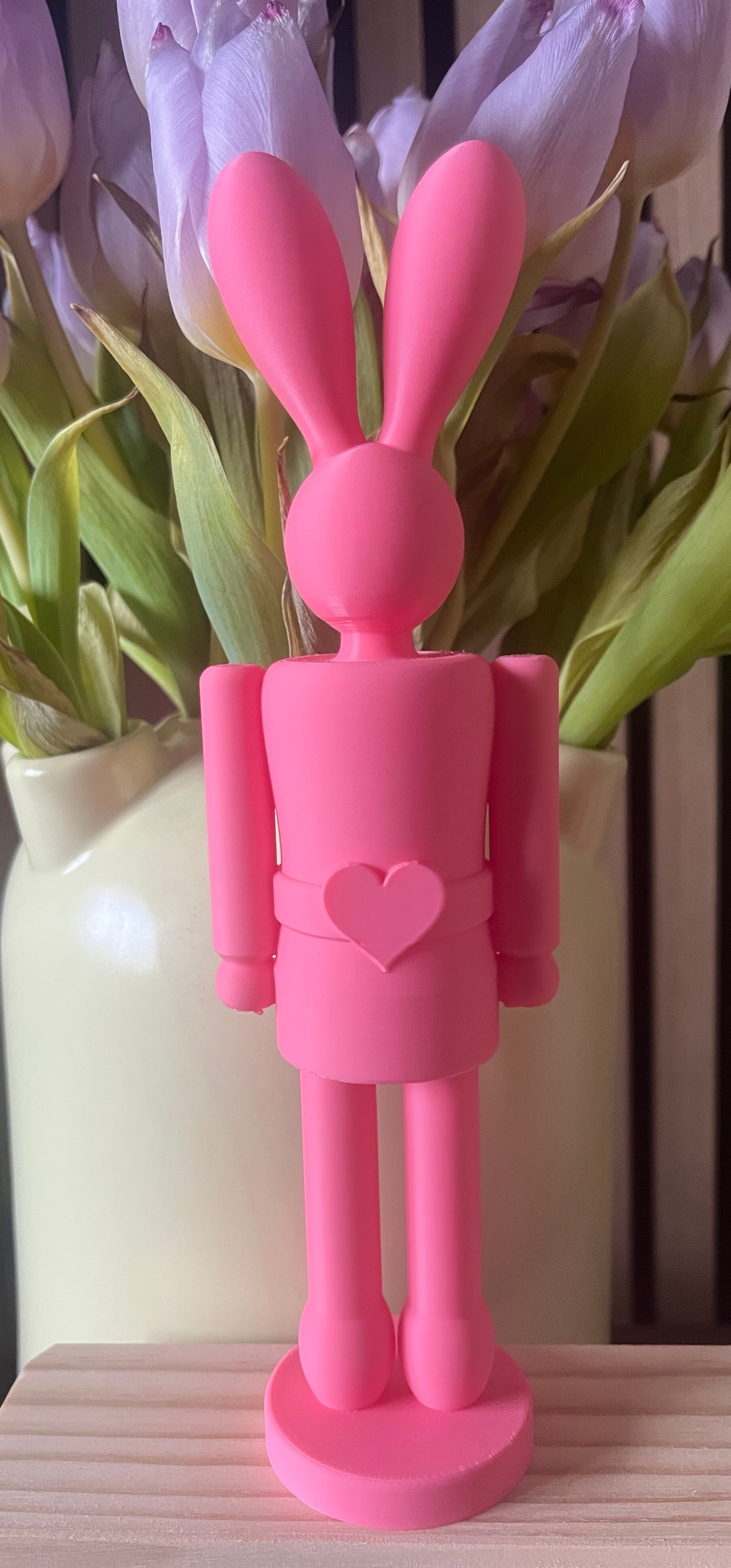 Deze paashaas notenkraker combineert functionaliteit met een speels design. Geïnspireerd op de klassieke notenkraker, maar dan in een moderne paashaas-vorm met een lief hartjesdetail.
